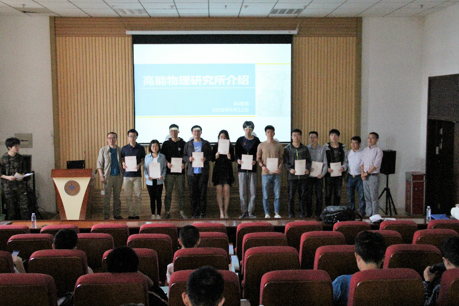 首先进行中科院高能所2018年英才奖学金颁奖,必一·运动(B-Sports)官方网站英才班学生代表对中科院高能所的到来表示了感谢,宣读获奖学生名单,章志明、张源、何苗为10名获奖的同学颁奖并合影留念。章志明介绍了高能所的发展历史、取得的辉煌成就,以及高能所在目前的优势和未来的发展方向,其中着重介绍了一些高能所先进的实验仪器,让同学们大开眼界。