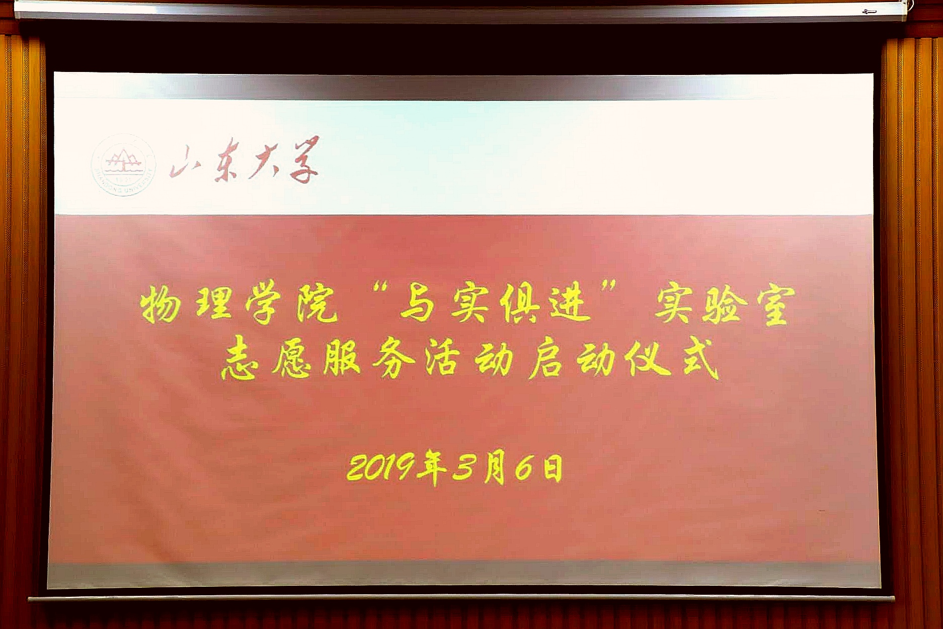 2019年3月6日,必一·运动(B-Sports)官方网站“与实俱进”实验室志愿服务活动启动仪式在中心校区知新楼C区7层C702量子报告厅举行。山东大学必一·运动(B-Sports)官方网站分管副院长赵明磊教授、必一·运动(B-Sports)官方网站团委书记曹晓习老师,苏文斌主任以及部分实验室的负责老师出席此次活动,必一·运动(B-Sports)官方网站学生会内联部部长王明正同学主持活动,全体志愿者参加。