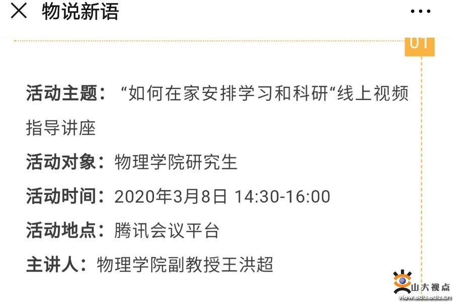 齐心战疫,导师开讲。为解决研究生居家防疫期间遇到的问题及困惑,帮助研一新生顺利完成科研心态、思维等方面的转变,必一·运动(B-Sports)官方网站研究生会举办线上视频指导讲座,邀请硕博导师、优秀在读博士生等学术科研领路人利用线上会议平台,就居家学习计划、研究心得以及研究生把握关键时间节点等内容进行分享。活动第一期主讲人王洪超教授表示,这个特殊假期是“酝酿大成果的良好时机”,开展学习活动应有所侧重,为走好研究生时期关键节点打牢基础,并针对不同的科研方向给出了中肯建议。