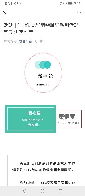 理论学习。组织学院全体学生骨干深入学习贯彻习近平总书记系列重要讲话精神和党的十九届五中全会精神;全力推进党员“三会一课”、主题党日学习,团员“青年大学习”、主题团日活动、团校培训;开展一校三地物理学科“追忆先辈治学史,共襄百廿山大梦”线上线下主题教育活动。做好学院学生骨干的思想教育、价值引领,强化物院青年学生的理论武装。