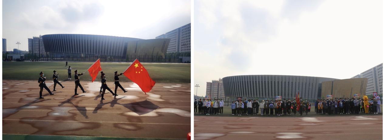 开幕式上,伴随着铿锵有力的《运动员进行曲》,国旗班方队及运动员、裁判员、志愿者和各班级方队陆续进入运动场,并在主席台前进行了精彩的队形、口号展示。郁鹏在致辞中表示,培养德智体美劳全面发展的社会主义建设者和接班人是高校教育的根本任务,养成一个健康的体魄不仅是人生的第一财富,也是青年人顺利完成学习任务的首要条件,他寄语两院青年学生以高昂的斗志和顽强的精神积极参赛,赛出风格、赛出成绩,同时,将体育运动中所蕴涵的不断进取、不畏艰难、公平竞争的精神转化为追求进步、创新创业的强大动力,随后,运动会裁判员代表、运动员代表依次进行庄严宣誓。上午9时,运动会正式拉开序幕。