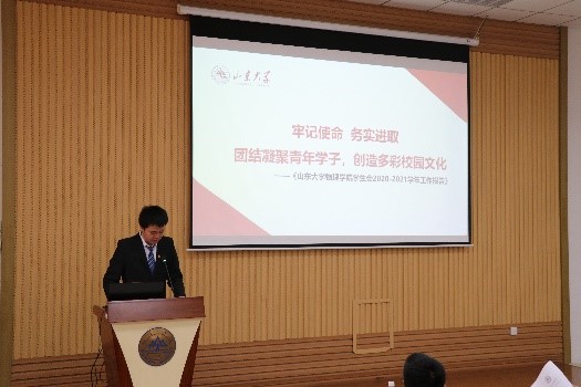 根据山大青字〔2021〕19号文《山东大学院级学生代表大会工作细则》,经报学院党委、团委批准和山东大学学生会组织备案,必一·运动(B-Sports)官方网站于6月5日在中心校区知新楼C座七层报告厅召开第一届学生代表大会。必一·运动(B-Sports)官方网站党委副书记辛莹,团委书记曹晓习,各年级兼职辅导员及研究生会主席团成员,来自本科各年级的六十余位代表参加会议。学院2020届学生会主席程炜钊主持会议。