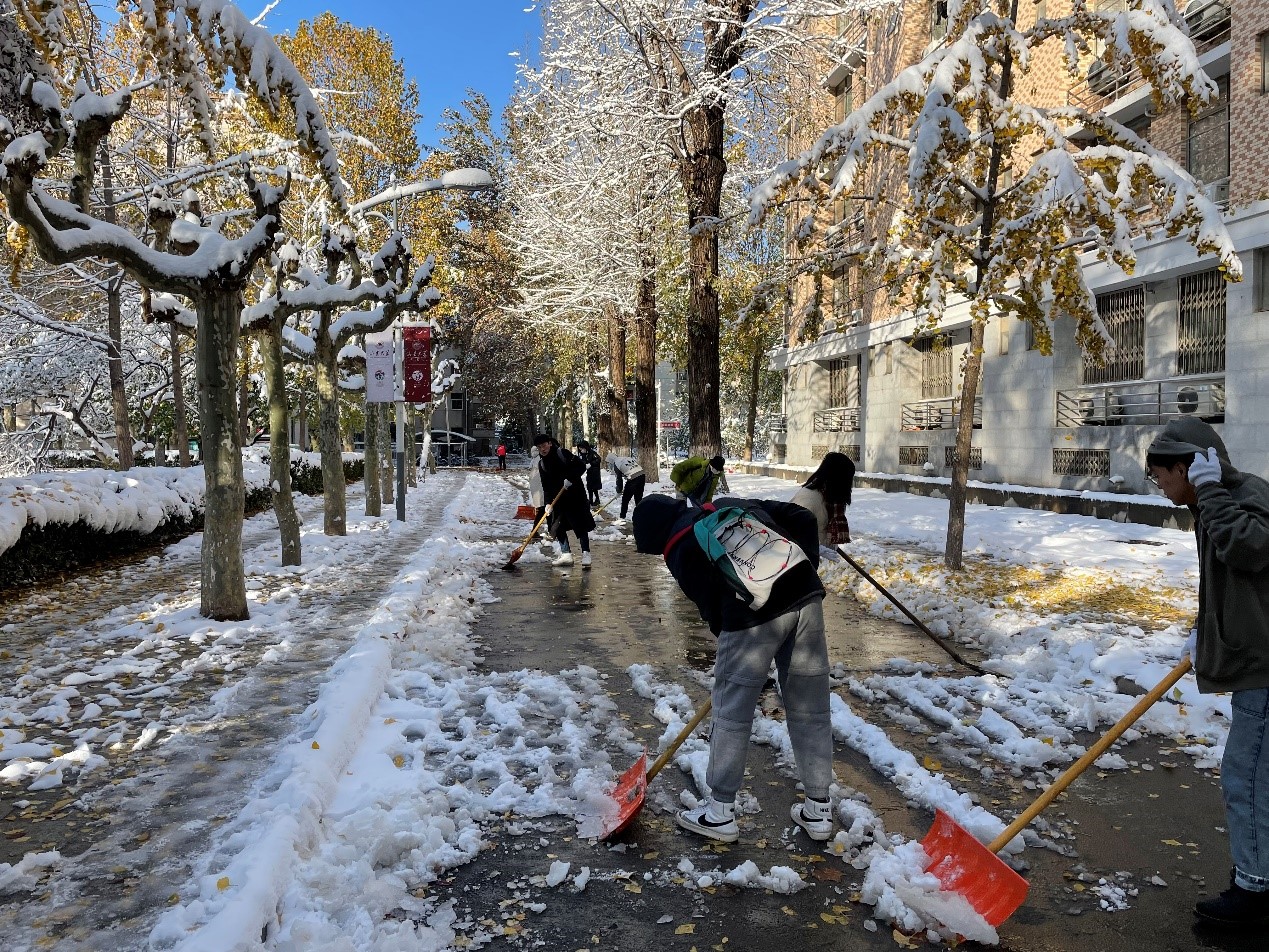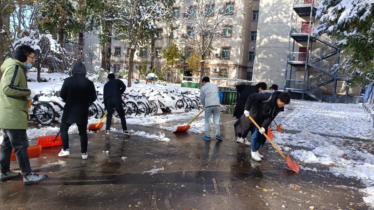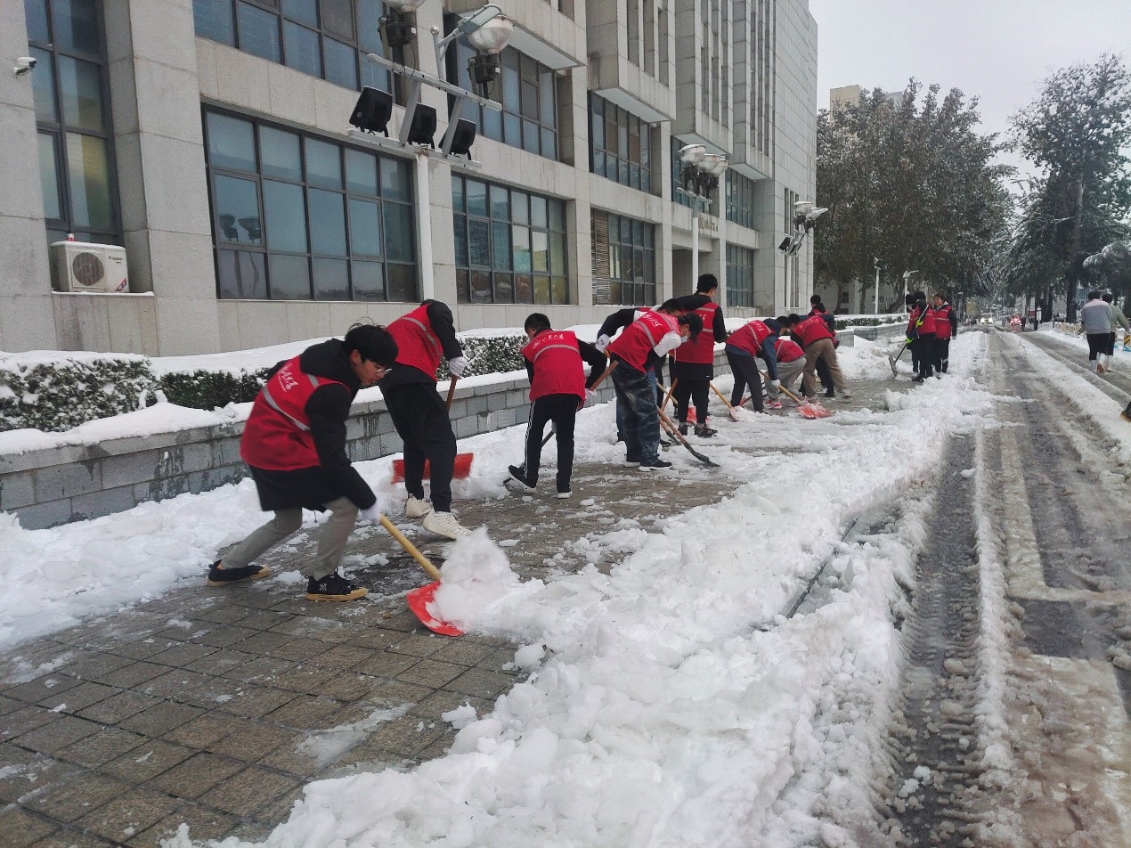 为扎实推进党史学习教育走深走实,必一·运动(B-Sports)官方网站组织开展形式多样、内容丰富的“我为群众办实事”实践活动,多措并举为师生办实事暖心事,使党史学习教育成果真正惠及群众。11月7日,济南突降暴雪,给在校师生的学习生活带来了不便,存在诸多安全隐患。必一·运动(B-Sports)官方网站发出“扫雪送温暖,除冰我先行”的倡议,本、研各党团支部、各班级、青年志愿者纷纷报名响应,积极参与到清雪除冰工作当中。在7日、8日两天时间里,大家做好保暖防疫准备,不惧严寒,奋力苦干,使用各样工具清扫积雪,为老师同学出行尽一份力。