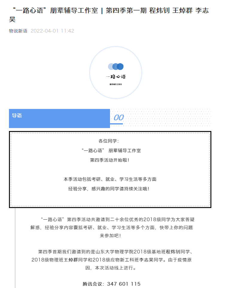就业促进工作全员聚力。全面开展学院2022届毕业生就业促进工作,学院书记院长、分管领导、毕业班辅导员、专业教师全员动员,帮助考研学生点对点提供招录信息、考研调剂信息等,同时将学院二楼教工之家作为考研复试专用场地,全方位做好考研学生的保障工作。建立就业信息共享群,为求职学生提供点对点简历修改、行业选择、往届毕业生联络等的指导工作,每周2-3期整理发布物理学、应用物理学专业等的相关招聘信息,截止目前已累计推送64期。继续拓展学院国外/境外校友资源,为计划申请出国/出境深造学生牵线搭桥,帮助学生缓解疫情影响下的出国留学难题。