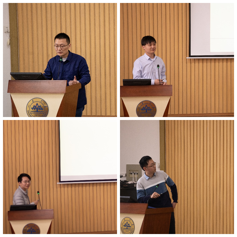 颁奖仪式结束后,学术讲座正式开始,张成龙教授首先作报告。张教授主要从事拓扑量子材料中的低温输运实验研究,他向大家介绍了能带拓扑的基本概念及这一领域的研究进展和应用前景。随后,李明星教授给大家带来了基于高通量实验和数据驱动的非晶合金研究方面的内容。李教授主要从事非晶、高熵合金等多组元合金的高通量实验和数据驱动的交叉研究,以此探索材料的化学组分、微观结构和物理性能的关系。紧接着,张然介绍了中科院物理所发展历史及概况,同时作为山东大学必一·运动(B-Sports)官方网站2020届本科毕业生和物理所2020级直博生,他分享了个人在大学以及研究生期间的学习科研经历。最后,同为山东大学必一·运动(B-Sports)官方网站校友的曹乘榕教授介绍了长三角物理研究中心及主要工作内容,并与同学们进行了分享交流。