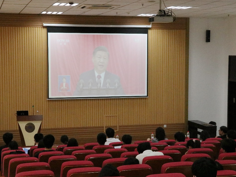 随着雄伟的国歌声,学代会于早上9点正式拉开序幕。全体与会成员共同学习了习近平总书记在第十四届全国人民代表大会第一次会议上的重要讲话,了解了全面建成社会主义现代化强国,人民是决定性力量,体悟了习近平总书记对青年一代继续奋斗、凯歌前行的殷切希望。