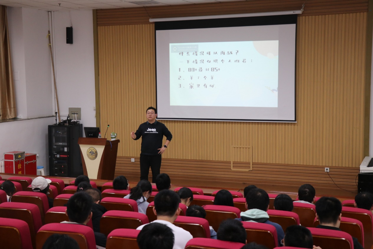4月14日,2022级本科生走进心灵讲座在知新楼C702报告厅顺利举行,讲座题目为《“人类高质量”大学生活指南》,2022级本科生辅导员王彬为大家开展了推免、考研、就业、出国、转专业等大学生涯指导。讲座最后,他提出希望同学们尽早确立自己的“高质量”大学生活目标,然后充满期待地为之付出行动,保持阳光自信、积极向上的心态,应对生活和学习中的各种挑战。