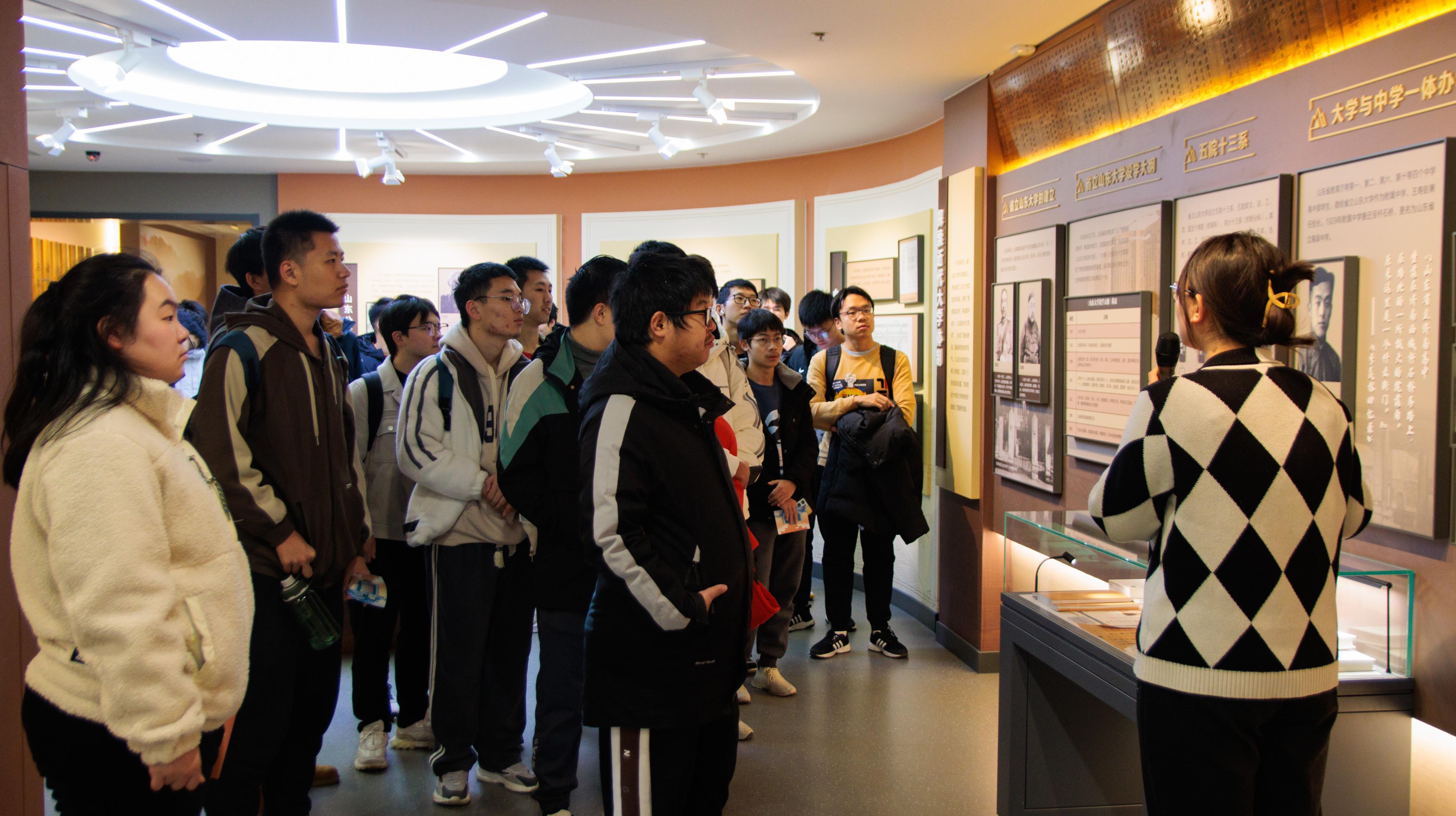 整个校史馆分为六个展厅,分别是“图强而生,立为国育贤初心”。在风雨飘摇、内外交困的1901年,山东大学应兴学强国的使命而生。办学章程上,“为天下储人才,为国家图富强”的办学宗旨凝聚成一代代山大学子心怀家国的使命担当;“汇揽英才,开文理合办先河”,院系设置勇开国内之先河,构建了综合性大学院系框架;“鼎新革故,扬优势学科美誉”,推动文理融合发展,形成文史见长的办学特色;“砥砺前行,守坚韧崇实品格”,在国内高校中率先开展马列教育,深促教育体制转轨;“改革创新,拓快速发展格局”,开创对外交流合作新局面;“强强联合,谱世纪跨越华章”,山东大学、山东医科大学、山东工业大学三校合一,山东大学高质量发展迈上新台阶。在讲解员的带领以及讲解下,同学们逐一观览了六个单元,对于山东大学的发展历程、办学特色以及文化底蕴有了深入的了解。