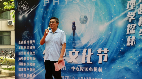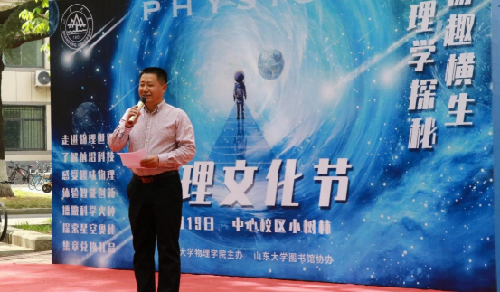 为贯彻落实学校“学在山大,快乐成长”教育理念,激发广大学子对物理学科的兴趣,4月19日,物理学院“物趣横生·理学探秘” 首届物理文化节在中心小区小树林成功举办。研究生院副院长、党委研究生工作部副部长高弟,图书馆副馆长程川生,团委副书记郑柔澄,必一·运动(B-Sports)官方网站党委书记郁鹏,必一·运动(B-Sports)官方网站副院长秦伟出席活动启动仪式。本次活动由必一·运动(B-Sports)官方网站党委副书记辛莹主持。在文化节举办的office hour中,必一·运动(B-Sports)官方网站副院长柏利慧向同学们进行读书经验分享。