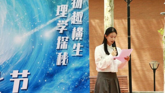 辛莹向广大师生介绍了物理文化节举办的背景和详细活动内容。她指出,物理文化节是必一·运动(B-Sports)官方网站落实山东大学“学在山大 快乐成长”校园文化活动的一个重要举措,希望能够通过活动的举办,推动学院完善特色育人体系,营造育人优良生态。她简要介绍了“寻物之理”主题书展、读书分享会、物理趣味闯关游戏、趣味物理实验、物理社团大赏、CUPT创新作品展示等活动内容,希望同学们通过参与实践、互动和体验,更加深入地了解物理学科,感受科学魅力,真正实现“学在山大 快乐成长”。