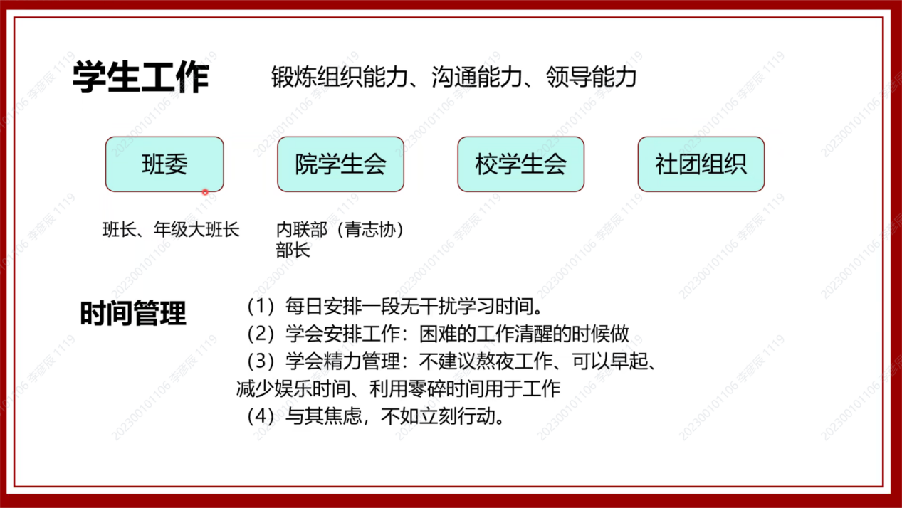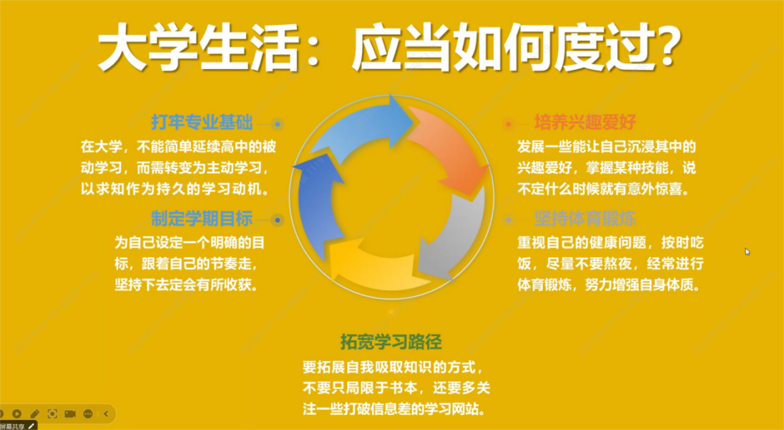 在活动的尾声,新生辅导员陈羽裳向新同学们再次表达了热烈的欢迎与衷心的祝愿,期待开学和各位新同学见面。通过“乐学讲堂•大学初体验”新生分享会,新生们受益匪浅,既了解了丰富多彩的大学生活,又对大学的学习与课程有了新的认识。相信同学们能以更好的姿态拥抱大学生活,成就更好的自己。