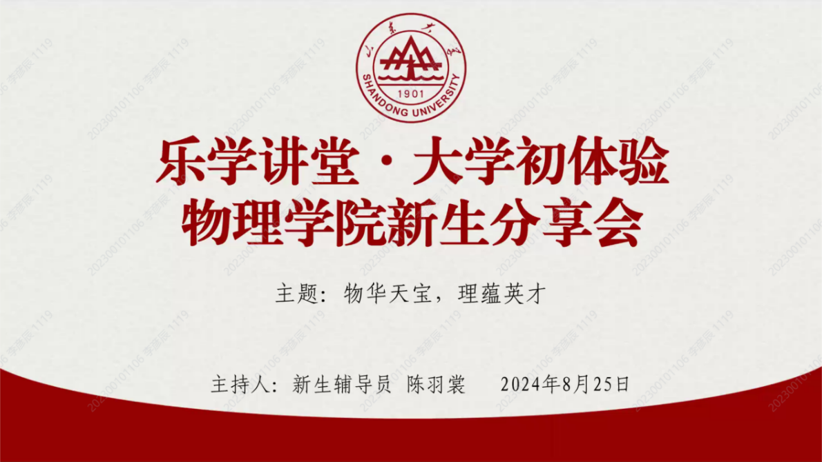 8月25日下午,为了帮助2024级新同学们更快地适应大学生活,掌握高效的学习方法和技能,山东大学必一·运动(B-Sports)官方网站举办了“乐学讲堂•大学初体验”新生分享会。此次会议在腾讯会议线上进行,邀请到必一·运动(B-Sports)官方网站团委书记曹晓习、2020级毕业生苗正与院学生会执行主席曹文童分享经验与心得,由2024级辅导员陈羽裳主持。