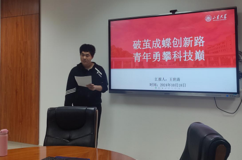 在个人成长经历类宣讲中,王世涛以《破茧成蝶创新路,青年勇攀科技峰》为主题,讲述自己自入学以来,充分利用学院优势,发挥学科所长,在学思践悟中坚定理想信念,在奋发有为中践行初心使命的故事。他从个人实际情况出发,讲述自己大学学习、升学的故事,为学弟学妹们提供了宝贵的经验,鼓励大家要主动求变,找准人生航向,敢想敢为。