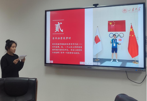 在先进典型案例类宣讲中,付鹏晓以《青年担当筑梦时》为题的精彩演讲,向大家讲述了山东大学校友薛其坤院士的科研故事,勉励大家弘扬科学家精神,展现新时代物院人的责任担当。