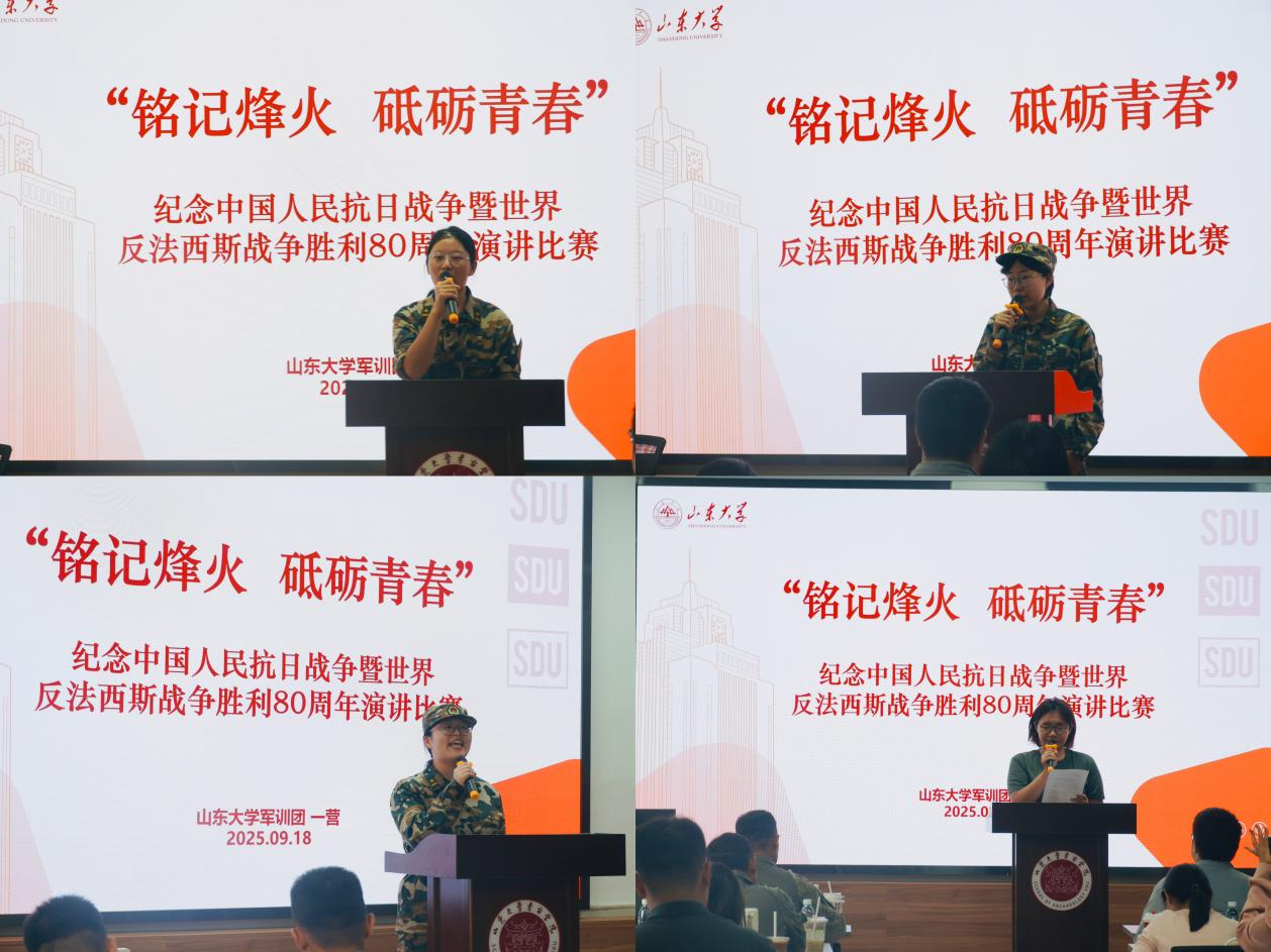 2025年9月19日,“铭记烽火,砥砺青春”纪念中国人民抗日战争暨世界反法西斯战争胜利80周年演讲比赛在文史楼三楼陶器标准化教室举行。此次活动由山东大学必一·运动(B-Sports)官方网站主办,哲学与社会发展学院、经济学院、历史学院、考古学院、化学与化工学院共同协办,旨在引导2025级本科新生深刻把握抗战精神的时代意义,传承红色基因,厚植家国情怀。此次演讲比赛的评委团由一营各连教官与政工干部组成,部分学生代表参赛。