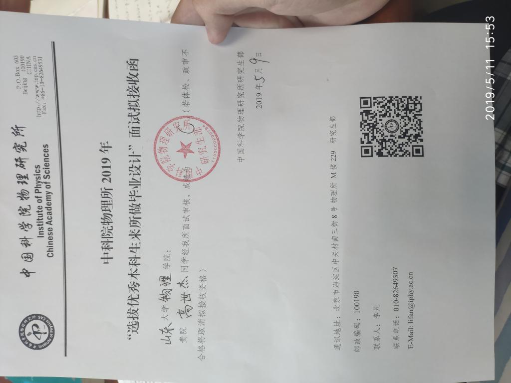 面试也是分组进行的,面试的主要内容老师也不会刻意刁难大家,如果老师知道你是物理专业的而不是天文专业的,不会问很多天文的问题,问的更多的是物理的知识。老师不是想知道你知道多少天文的知识,可能更多的想了解大家大学的学习情况、平时的学习态度、对所学知识掌握的程度以及学习的能力等。问我的问题涉及了量子力学和电动力学。量子力学问了测不准原理,电动力学问的比较多一些。最开始是从相对论开始问,然后又转到了推迟势这个问题,又转到电偶极和磁偶极辐射的问题,一直问一直问最后问到我不会了就停了下来。面试结果会在最后的闭幕式上公布,颁发优秀营员证书。