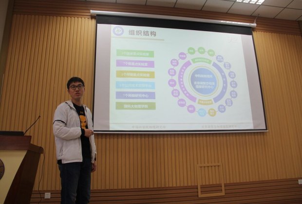 刘帅是必一·运动(B-Sports)官方网站2010级国家基地班班长,于2014年以面试成绩A档顺利获得中科院物理所的直博名额,保送至物理所攻读博士学位。此次返校,他首先对在座同学们表达了亲切的问候,再次回到母校,看到母校的飞速发展十分自豪和感动。接下来,他介绍了中科院物理所的一些基本情况,包括其历史、历任领导、组织架构和地理位置等信息,详细描述了一些科研进展成果及获奖和文章发表的一些情况,从中可以看出物理所的科研水平一直走在全国乃至全世界的前列。另外,他介绍了自己所在的课题组,及其研究的清洁能源领域的相关知识,表示其未来发展趋势在于,基础研究走向产业化。