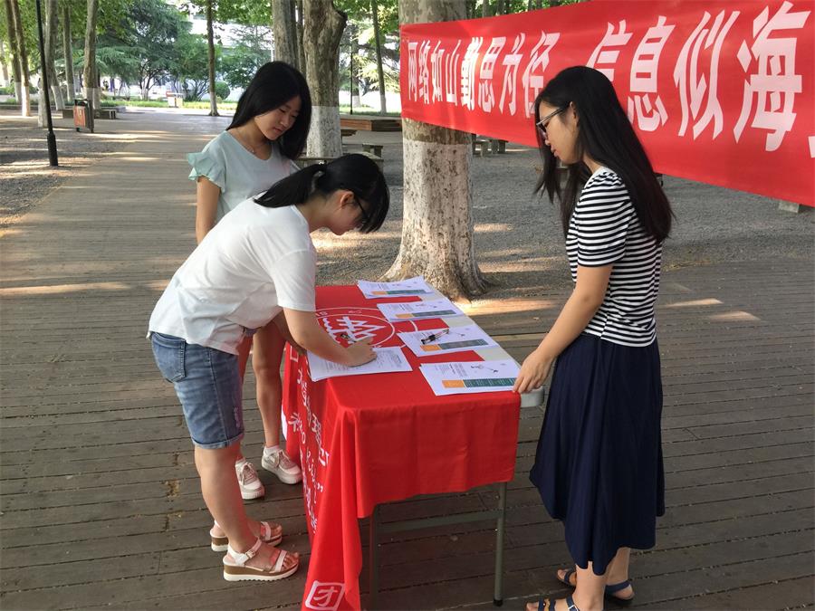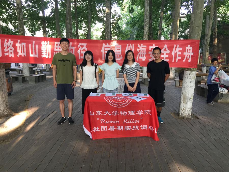 7月14日上午八点,必一·运动(B-Sports)官方网站Rumor Killer团队赴济南关于网络谣言的调研团队于山东大学中心校区小树林进行主题为“网络如山勤思为径,信息似海安全做舟”的宣讲。