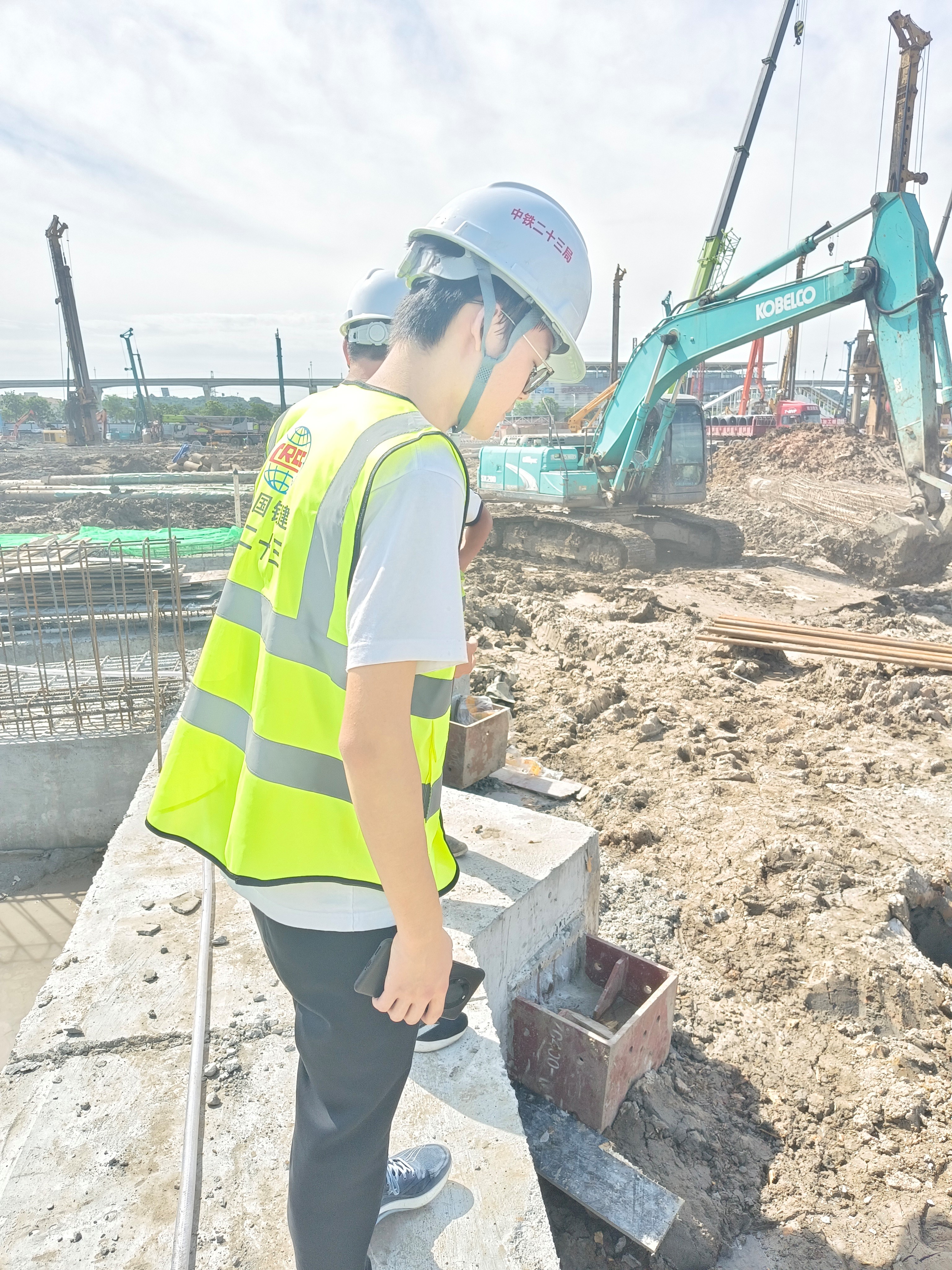 一踏入工地,我们便被要求穿戴好安全帽、防护眼镜等以确保安全。随处可见的安全警示牌和严格的安全操作规程,提醒着每一位在场人员对安全的重视,这是我们实践的第一课。
